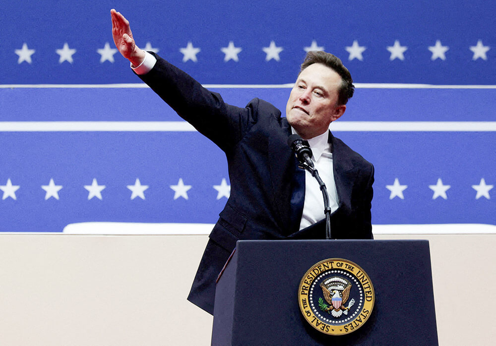 But the photo that will remain from this ceremony will be that of Elon Musk -the white afrikaner – making the Nazi salute.